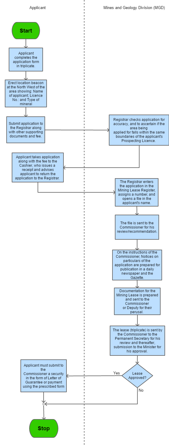 | Step 10 | The Mining Lease is prepared and sent to the Commissioner or the Deputy for their perusal |